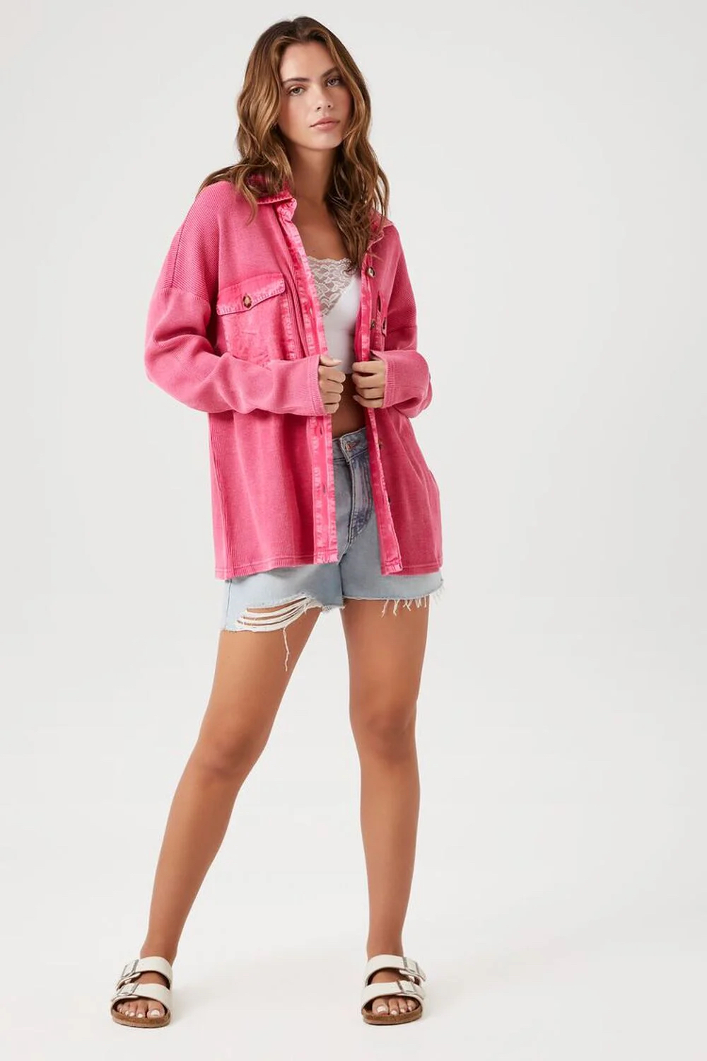 8. Shacket, Denim Shorts & Sandals