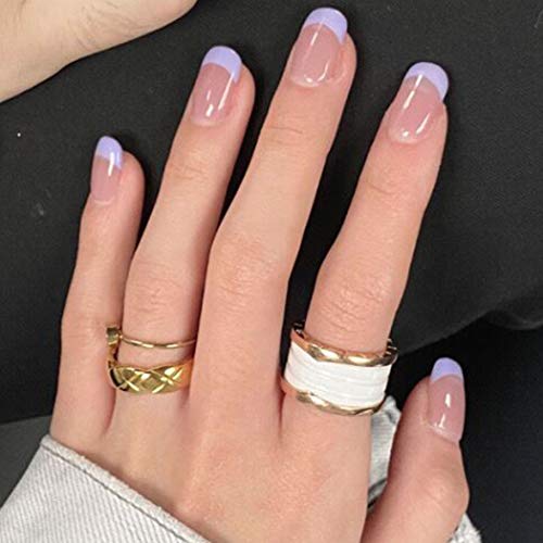 When doing these kinds of nails, I would recommend going for a lighter color, as seen on these beautiful light purple press-on French nails.
