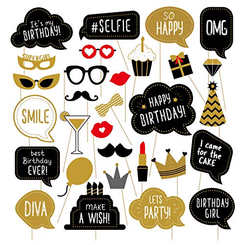 If you want to have even more fun taking photos at your birthday party, get some props to use in the photos like in this birthday photo props kit.